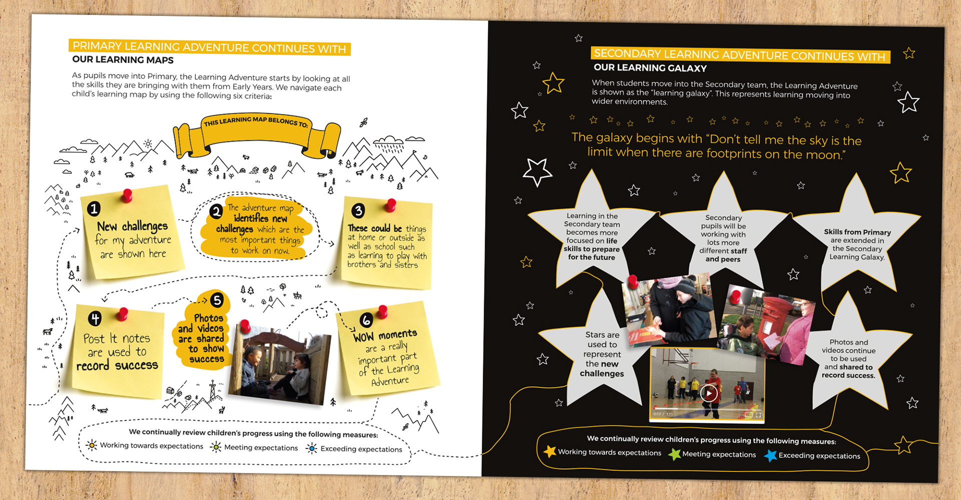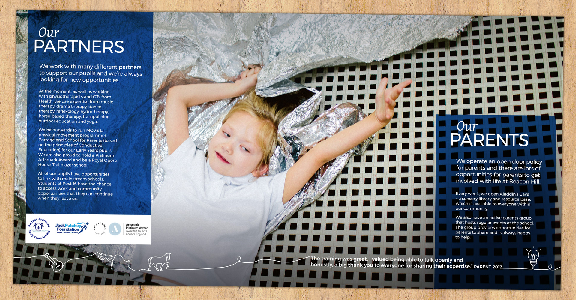 They needed to update all of their marketing, and make sure their new material explained the childrens' learning adventures which followed them all the way through their time at Beacon Hill. Mike at Joy Creative brought my expertise in to his team in to design their prospectus, new starter brochure, folder and stationery.