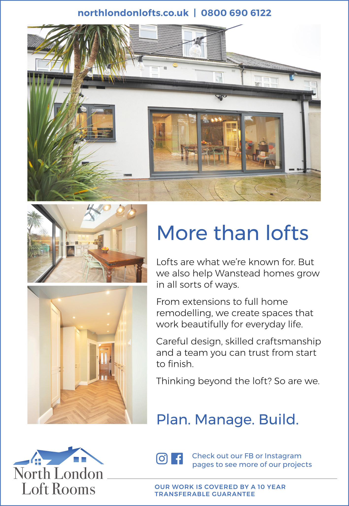 In addition to the website, I manage and create content for their Facebook and Instagram channels, showcasing completed projects, strengthening brand consistency, and engaging their audience. I also design their print advertising for the Wanstead Village Directory, ensuring a polished and recognisable identity across all touchpoints.