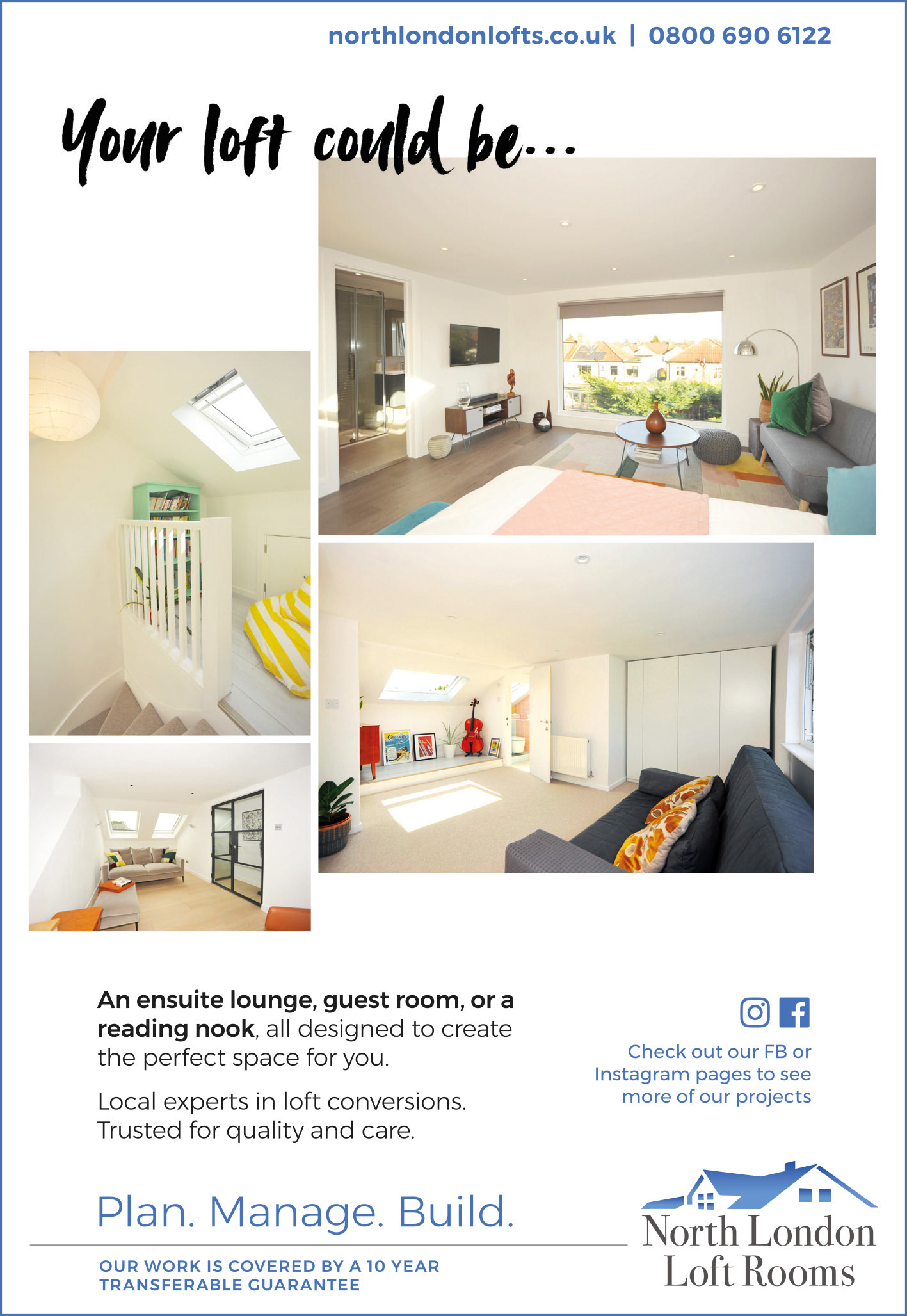 Since 2023, I have partnered with North London Loft Rooms (NLLR) to develop a cohesive and impactful brand presence across both digital and print. I led the redesign of their website, focusing on a clean, modern aesthetic and an improved user experience. The site was then built and developed by Stephen.