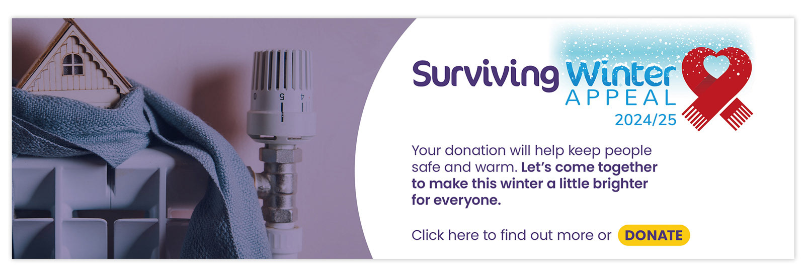 Surviving Winter Appeal 2024 - SM squares, Email banner & printed A5 leaflet.